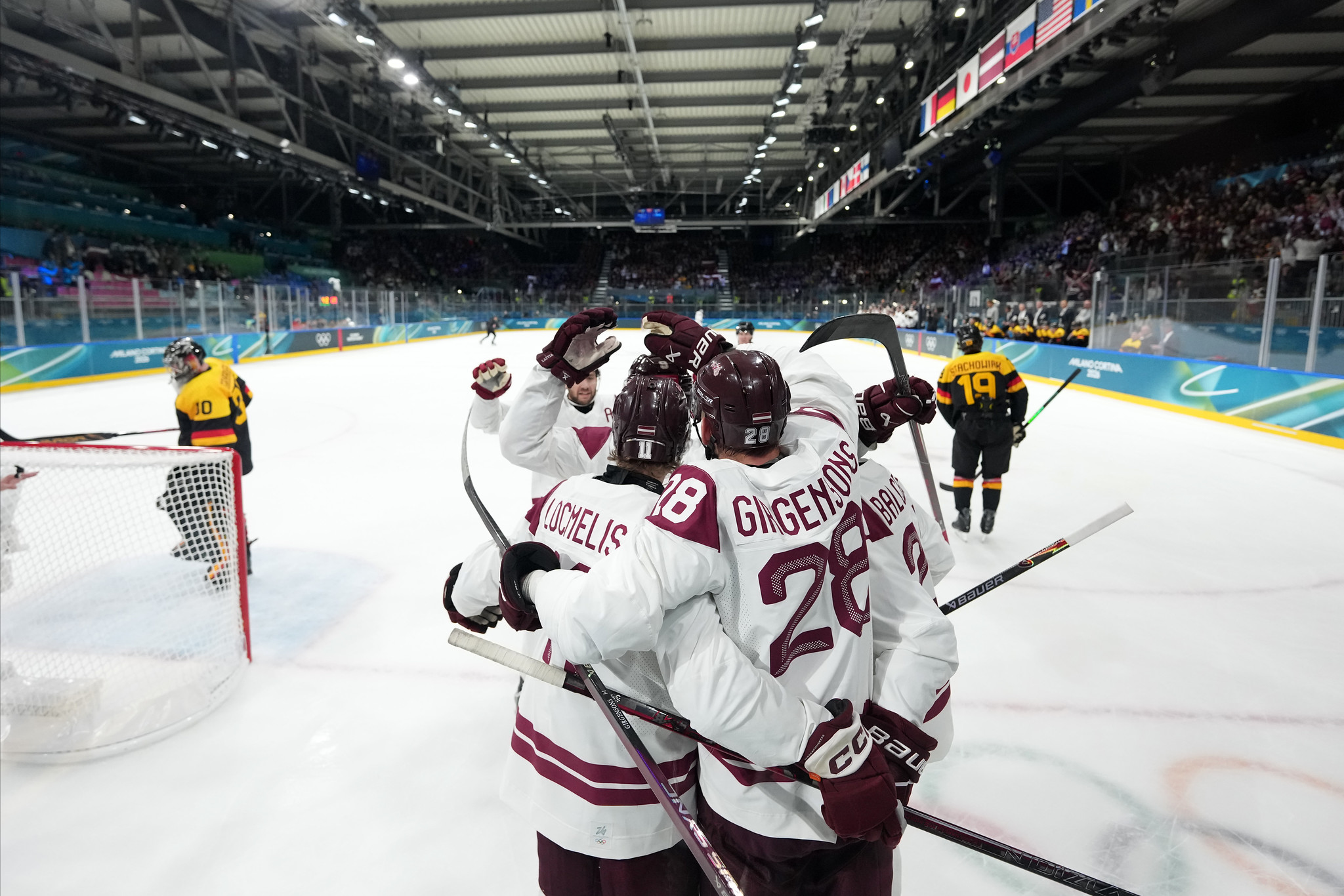 Latvijas vīriešu hokeja izlase olimpisko spēļu turnīra otrajā mačā ar 4:3 (1:2, 1:0, 2:1) pārspēja Vācijas valstsvienību.
