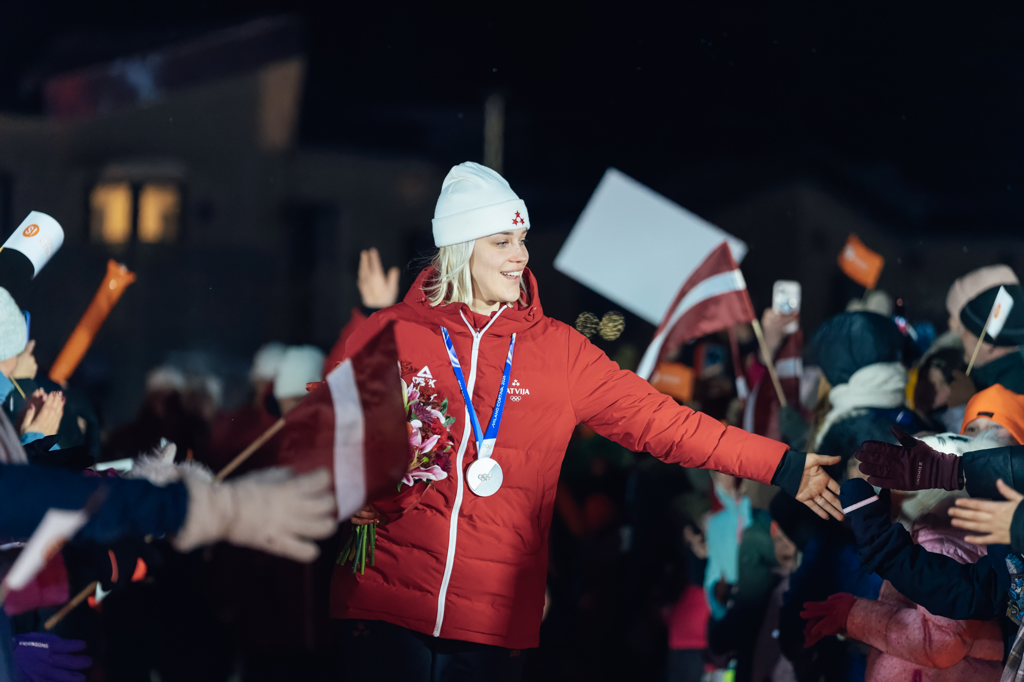 Siguldas dzelzceļa stacijas laukumā notika oficiālā sportistu sagaidīšana, īpaši godinot Botu viņas dzimtajā pilsētā.
